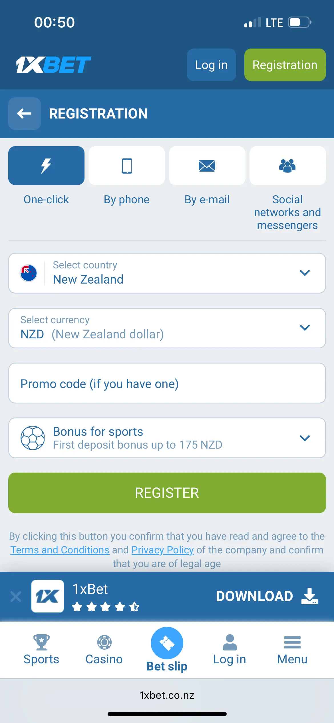 Registration at 1xBet Casino in New Zealand