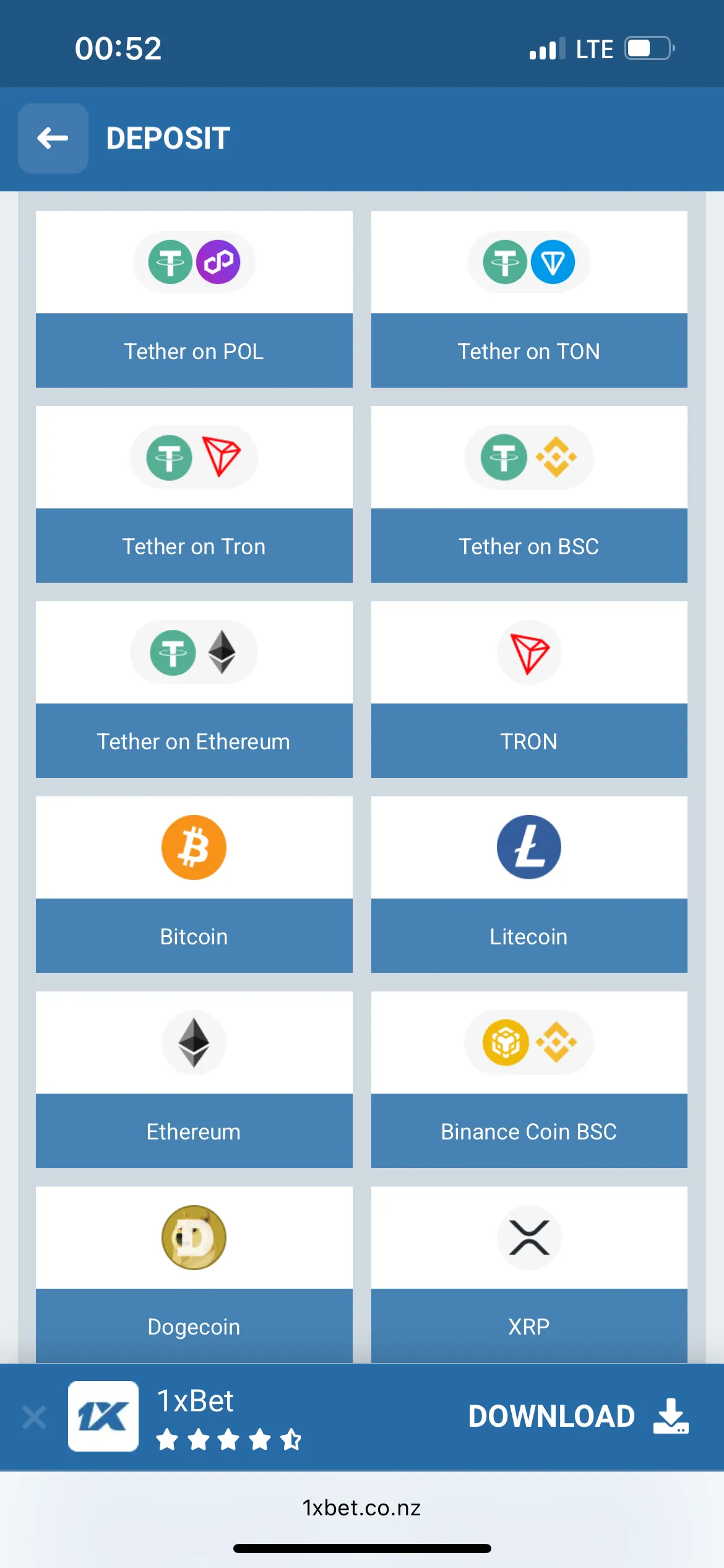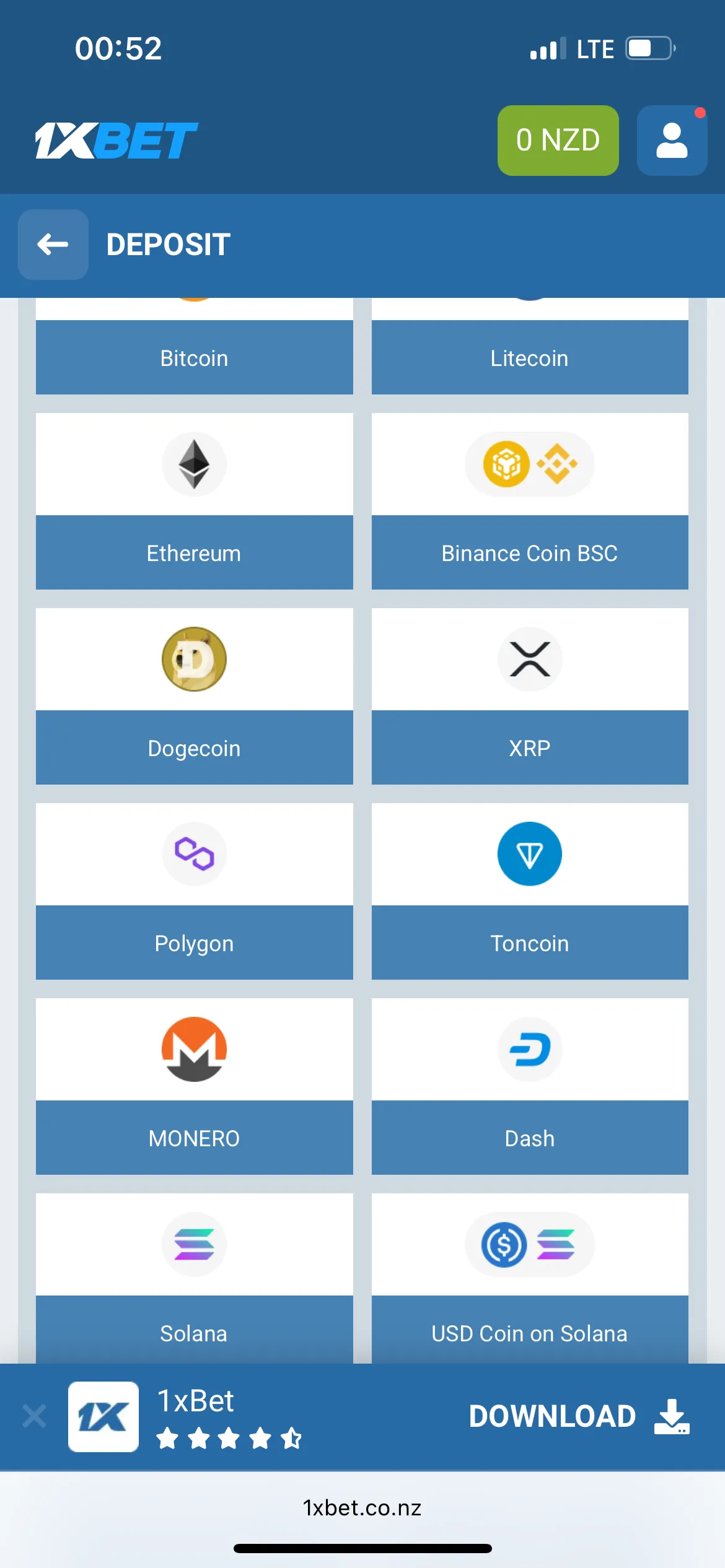 The minimum deposit required for fiat is 10 EUR. If you choose crypto, the minimum deposit for USDT is 10. I found that 1xBet has no limits when it comes to withdrawals, but the minimum amount for crypto is 50 USDT and 20 NZD for cards and e-wallets. Regarding time, deposits are instantaneous but withdrawals take minutes if you deal with crypto, up to 48 hours if you use an e-wallet and 3 days if you choose bank cards.