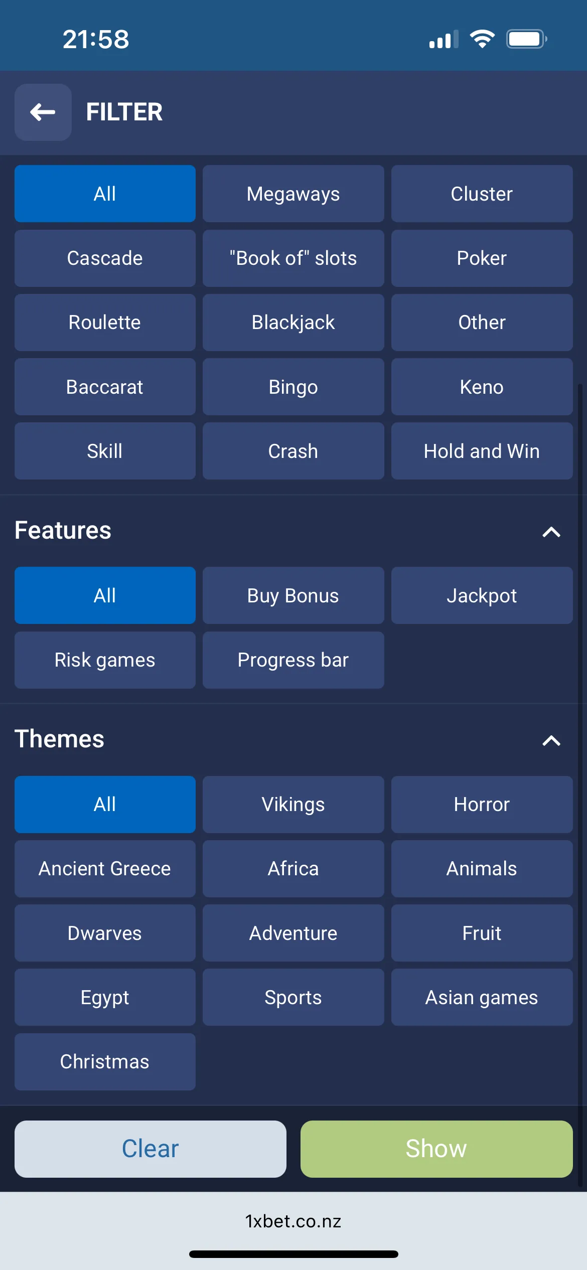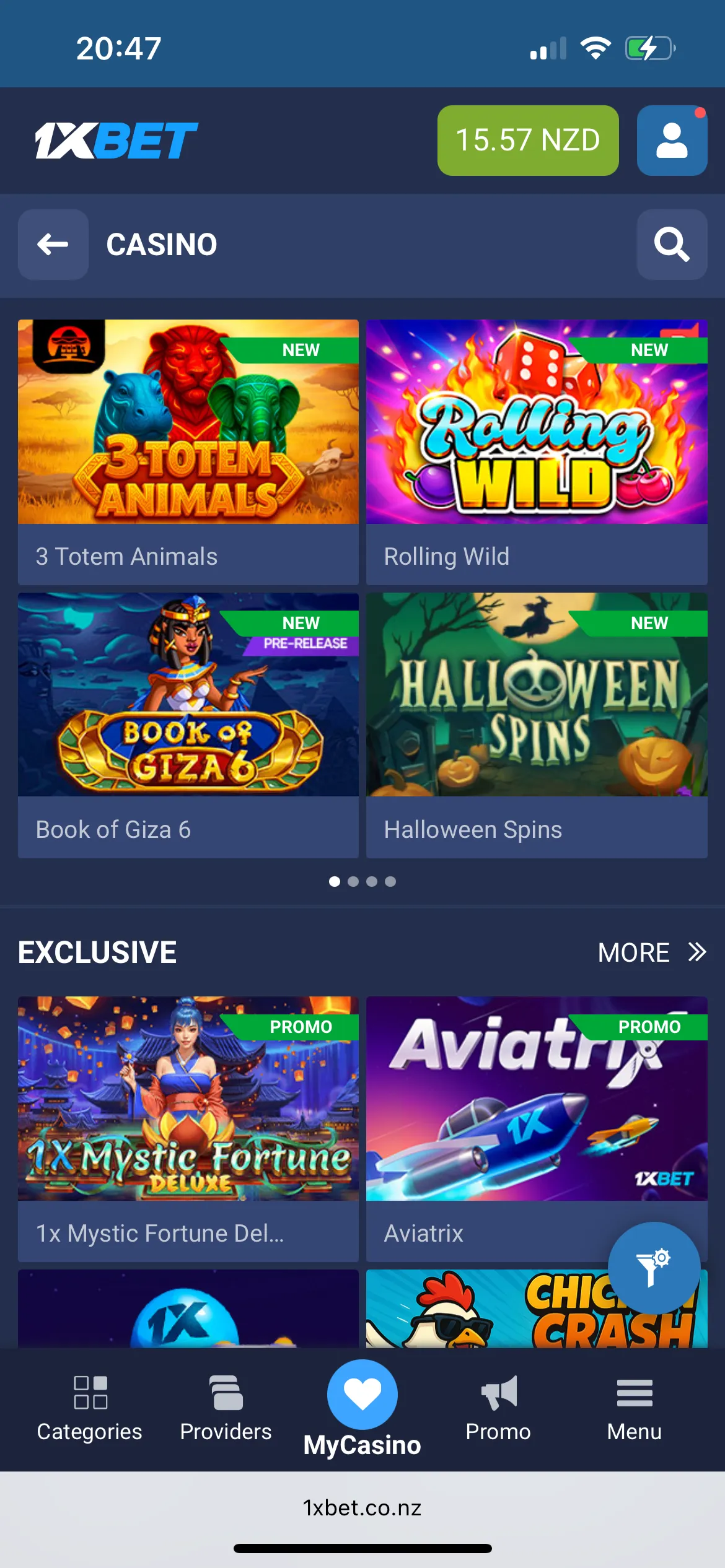 Games at 1xBet Casino NZ