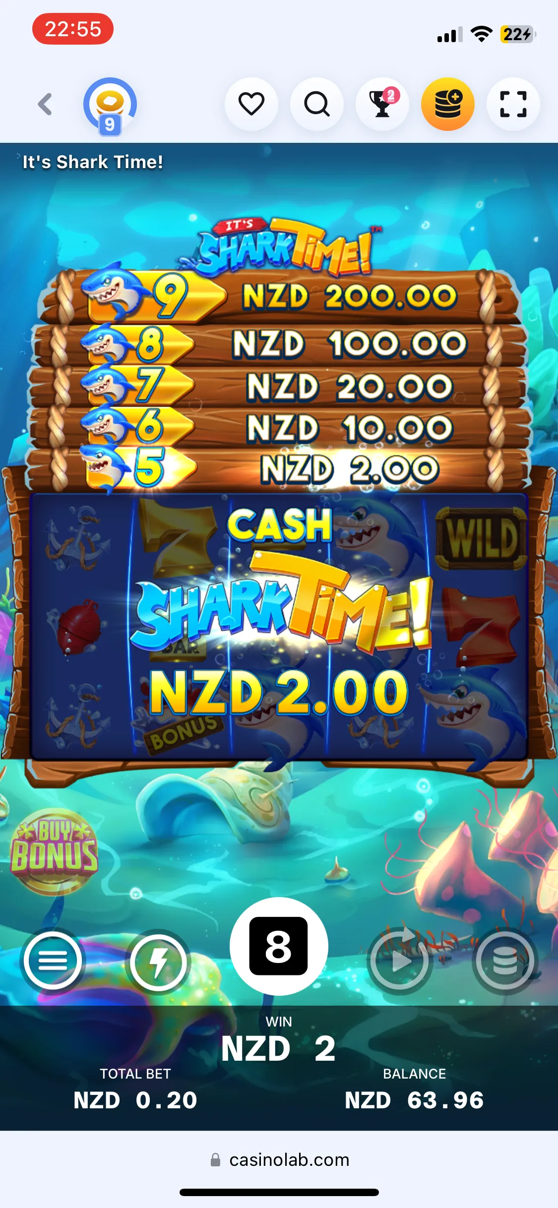 The minimum deposit needed was 40 NZD in order to unlock a welcome bonus. The casino gives 1 Bonus Crab, 100% on top of the deposit and 200 FS (20 for ten days). The wagering is pretty manageable. I found that if you can’t wager the bonus, it will be cancelled, and you will have 0 in your account. Also, note that FS can only be claimed when you wager the first bonus.