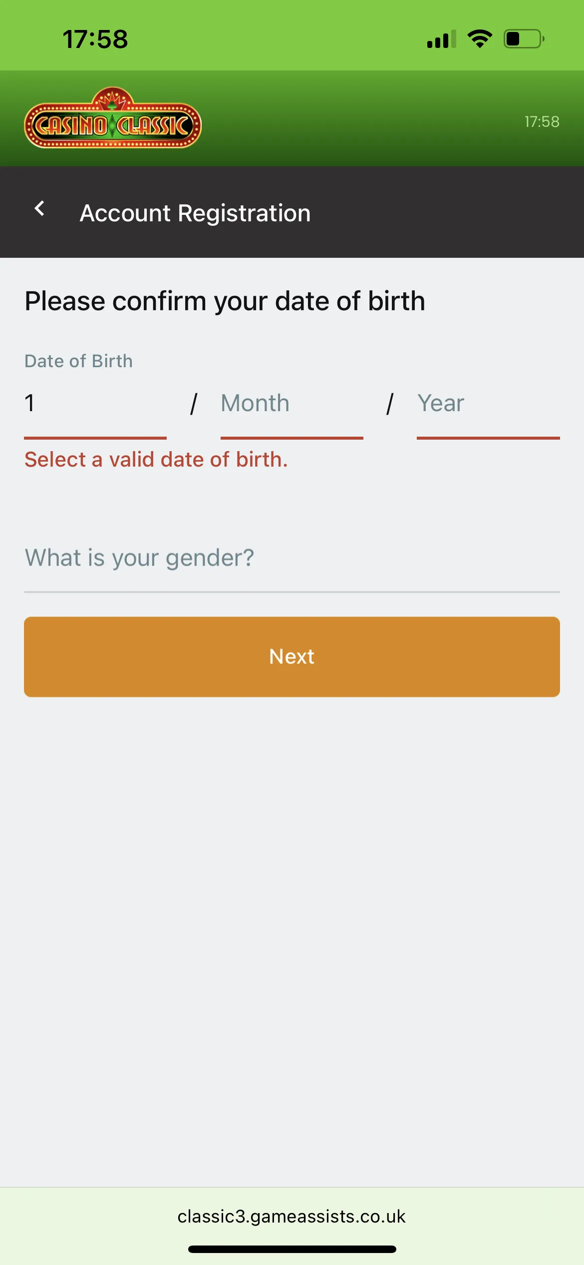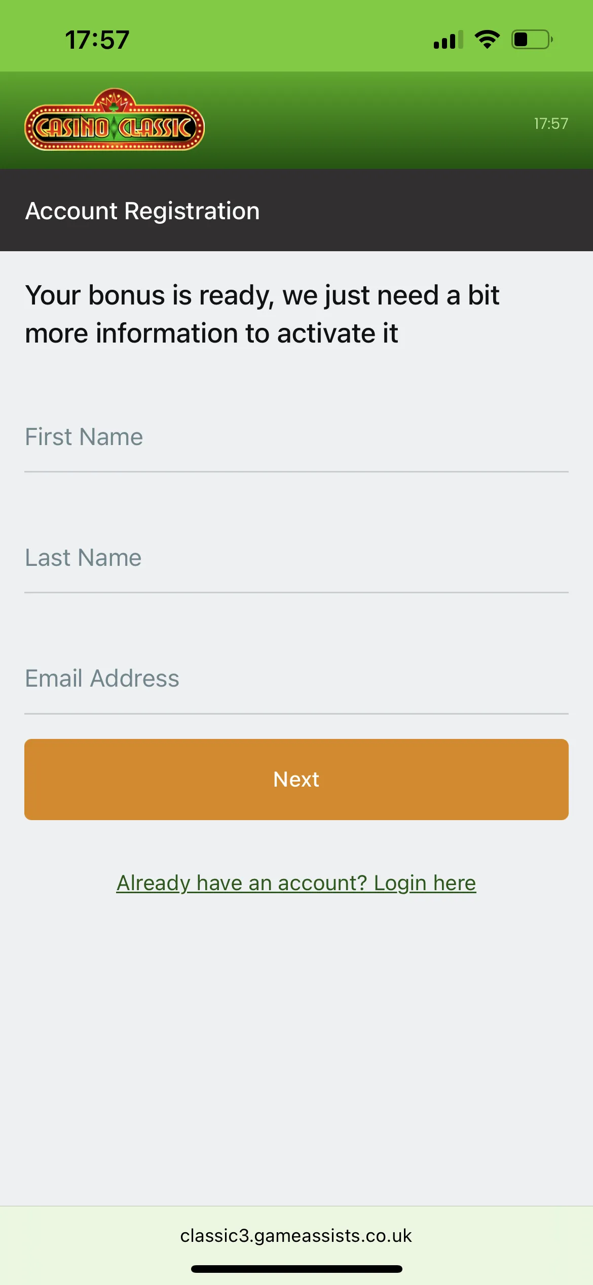Proceed to the Casino Classic NZ official site and find the orange Register button. Click it, and the account registration form will instantly appear on your screen. The details Kiwi players must provide include: