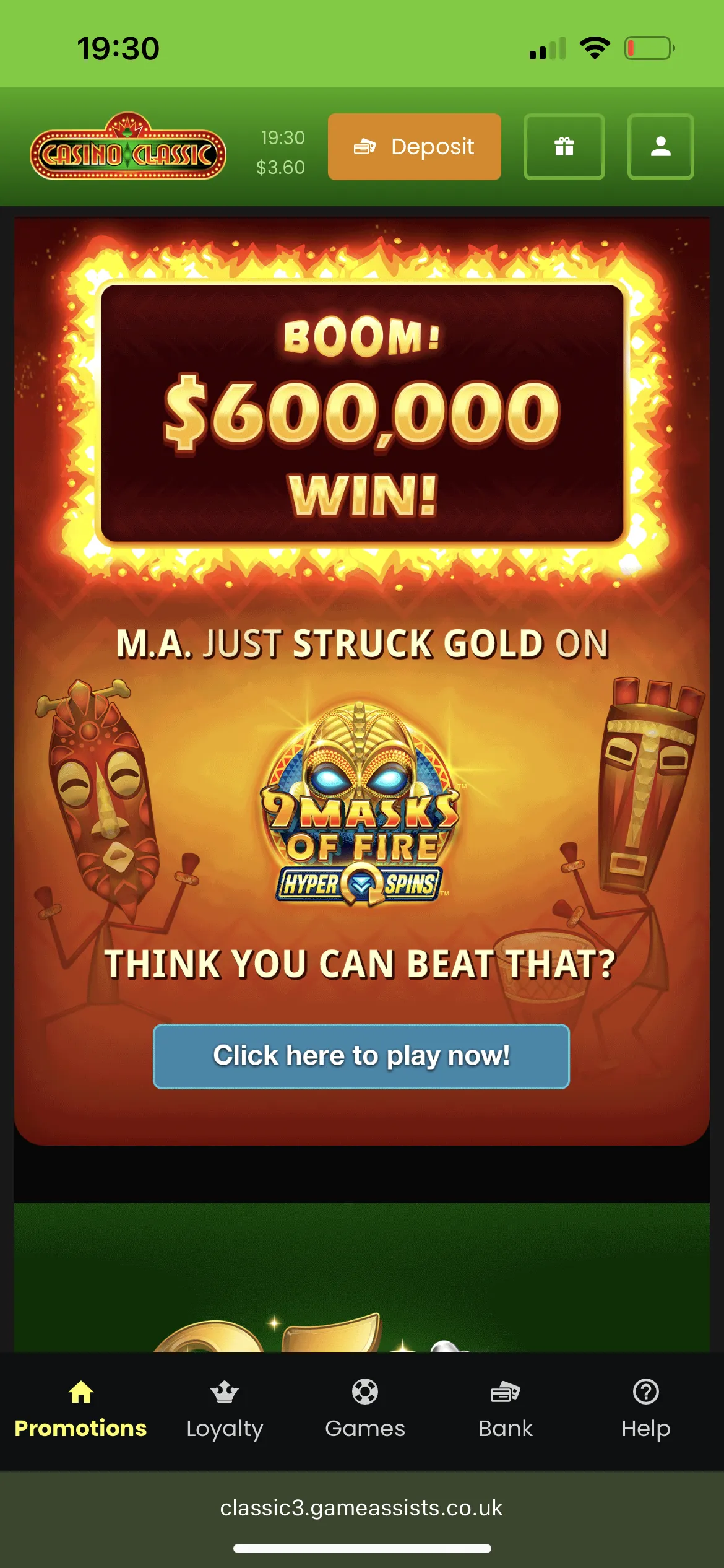 The pokies I tested at Casino Classis were Gold Blitz Express, Give Me Gold: Mo Fish, Cash Crusade Assemble, Bigger Bonanza Rush Express, 333 Boom Banks 2 Power Combo, where I received 7 Casino Classic free spins and won 11.44 NZD, 12 Masks Of Fire Drum Frenzy, Area Link All The Luck in which I was lucky to win 4.37 NZD, Clusterbuck Xtreme, Kingfisher Boo, Frightening Frankie, and Prize Ladder.