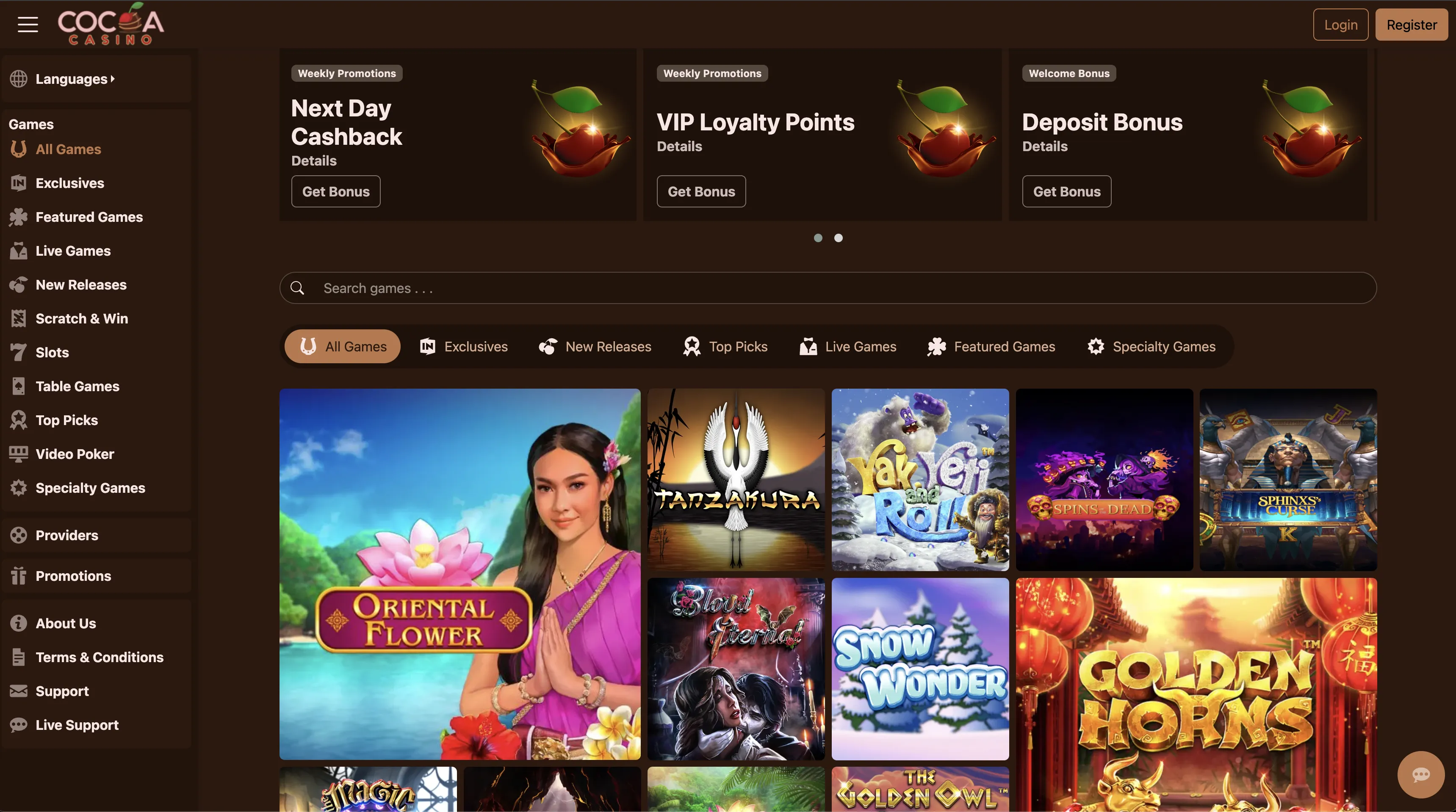 Cashback is also available at Cocoa Casino. Standard players usually get around 10% next-day cashback, while VIPs can climb to as much as 30%. One thing to keep in mind is that like most casinos, bonuses here come with wagering conditions and sometimes cashout limits. It’s not a Cocoa Casino scam – just standard practice in the industry. Still, always read the terms to avoid surprises.