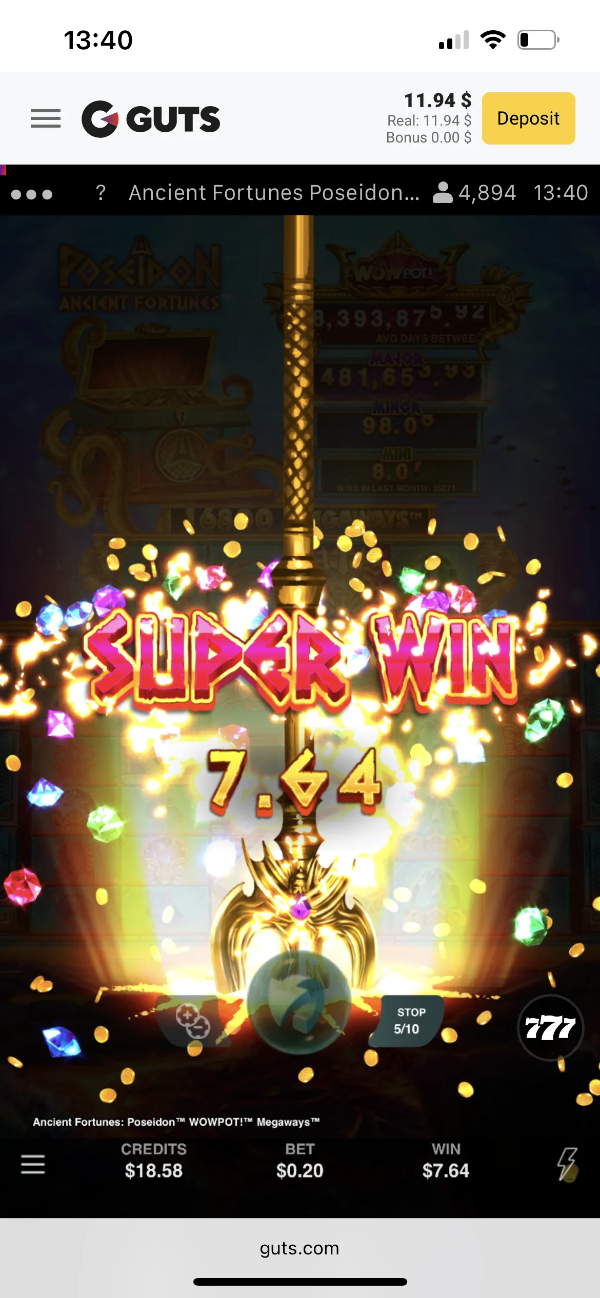 The minimum sum Guts Casino allows you to cashout via Skrill is 20 NZD. I requested 50 NZD. I was happy to receive my win within an hour. So I was glad I didn’t have to track my withdrawal and worry about it.