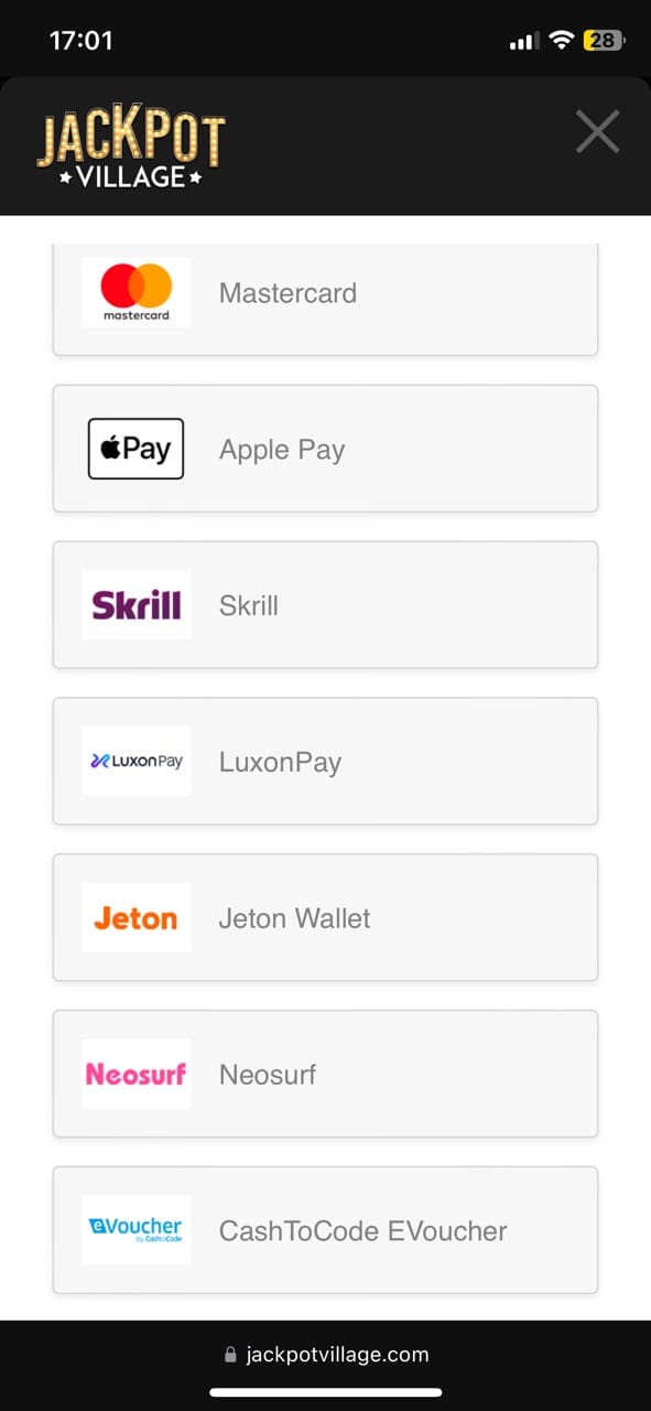 It was easy and fast to create an account at the Jackpot Village casino site. I actually registered using my mobile phone, and everything worked perfectly. I didn’t need to install a casino app for it. Moving to deposit, I was impressed with a wide range of payment methods. The banking page covers everyone’s tastes and requirements, offering a bank card, a bank transfer, a mobile payment service, an e-wallet option and a prepaid card. I chose Paysafecard. If you prefer e-wallets, check our Neteller casinos for more NZ sites that accept it. The good news is that Jackpot Village does not charge fees, so I got exactly what I deposited in my account.