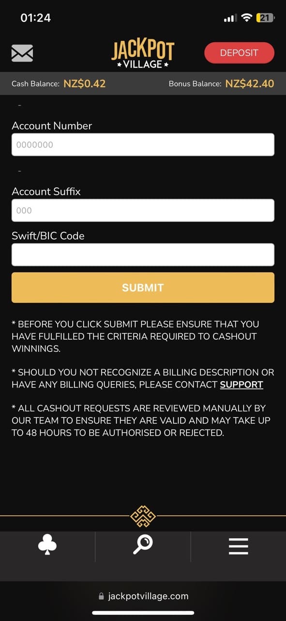 | Support | Slower that at most NZ casino sites |