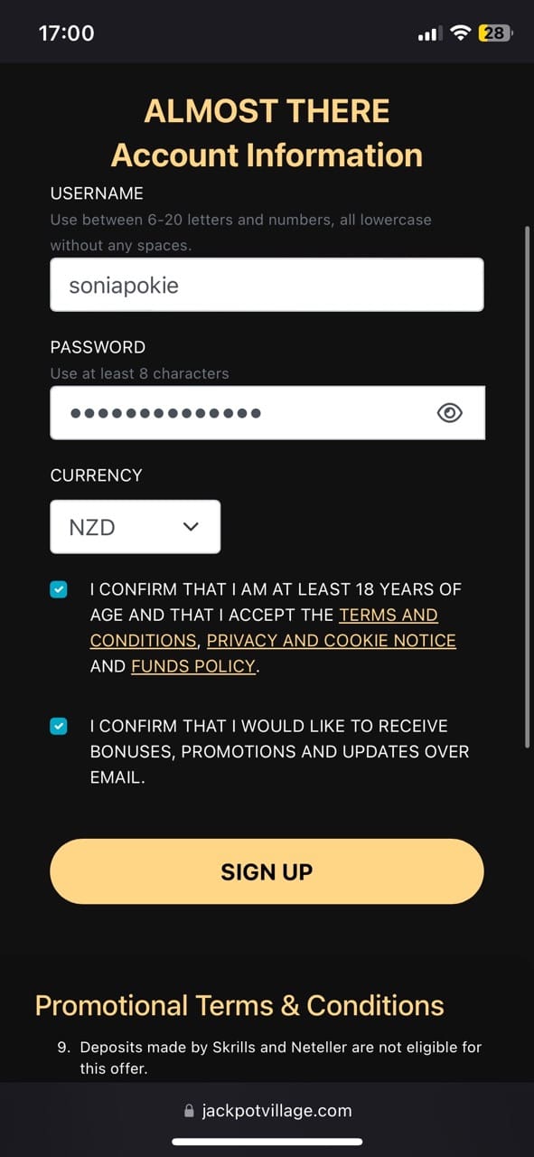 To claim your 1st deposit bonus and play thousands of games for real money, you will need to create an account first. These are the details Kiwis are asked to submit include: