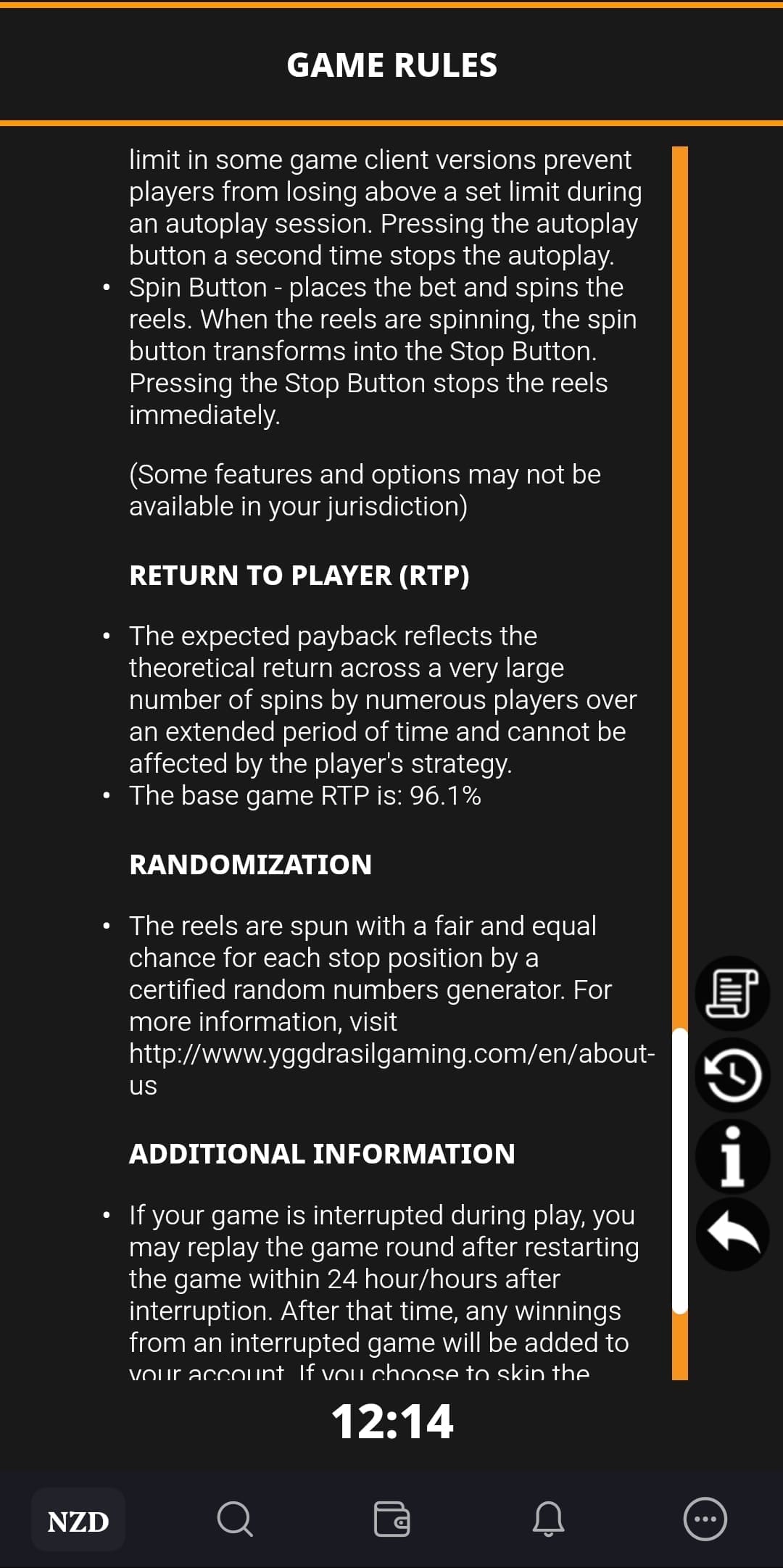 I’d say this constitutes a pass of my test, with a warning. Make sure to check the RTP of the game you’re playing by going to the Info screen. Also take note that this is a snapshot of the RTPs taken at the time when I was playing, in December 2024. The RTPs can change at any time.
