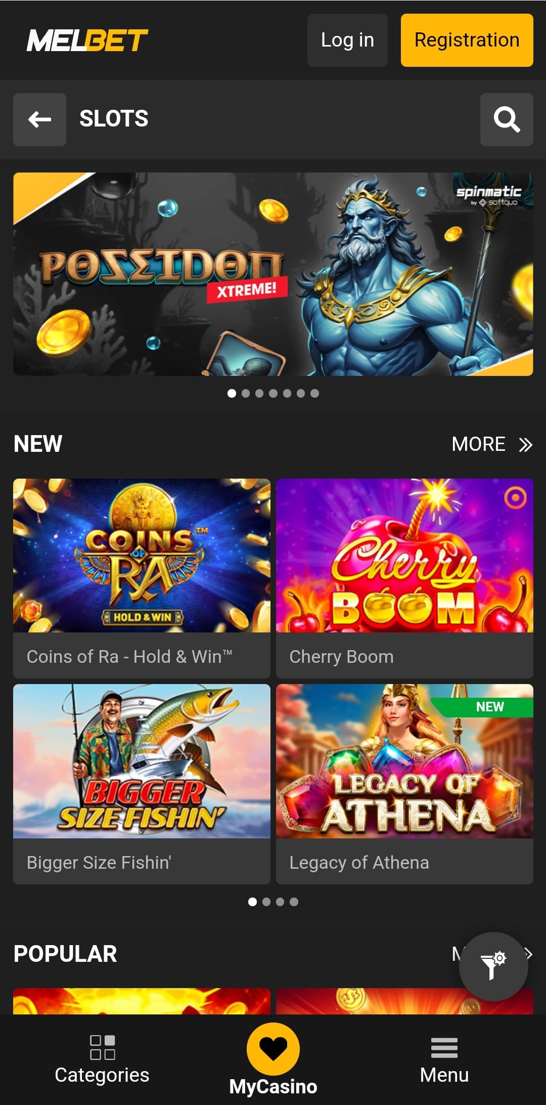 You’ll see the Popular slots and New slots, and these represent the pokies that Melbet wants to promote to you and have you play them. They aren’t necessarily good slots.