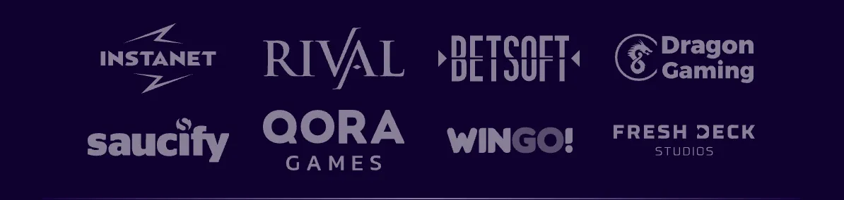 Smartsoft Gaming, Instanet, Rival, Tom Horn Gaming, Vivo Gaming, Betsoft, Spinomenal, Dragon Gaming, Saucify, Qora Games, WINGO, Fresh Deck Studios, Felix Gaming, Fugaso