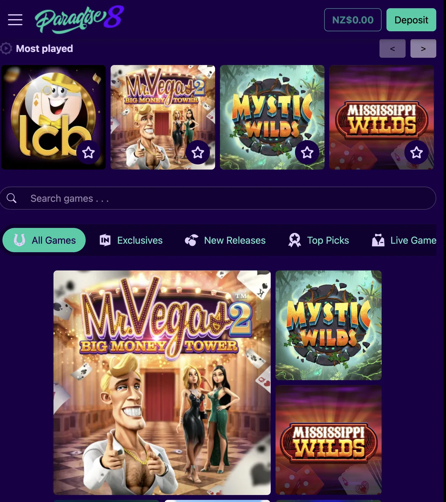 - No games from mainstream providers available