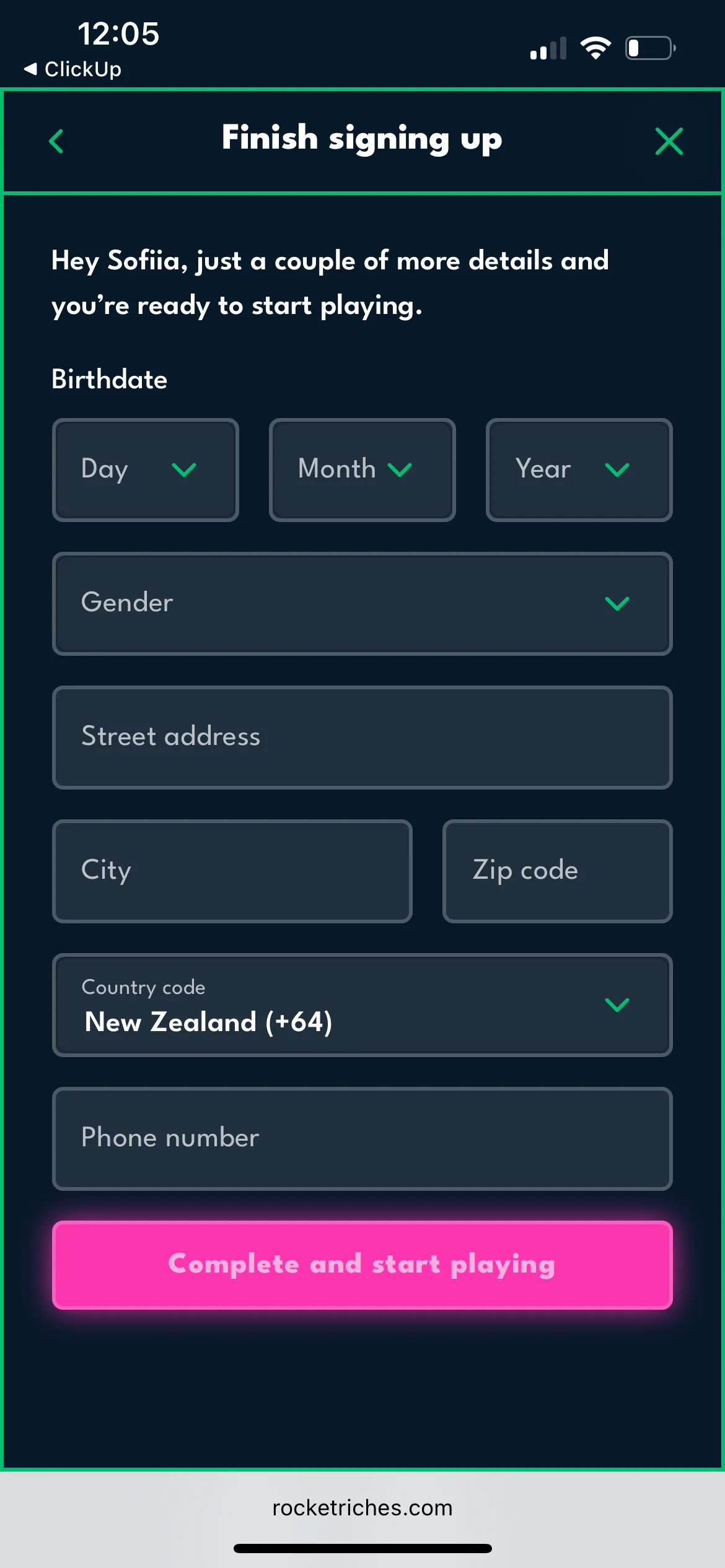 Registration at Rocket Riches Casino NZ
