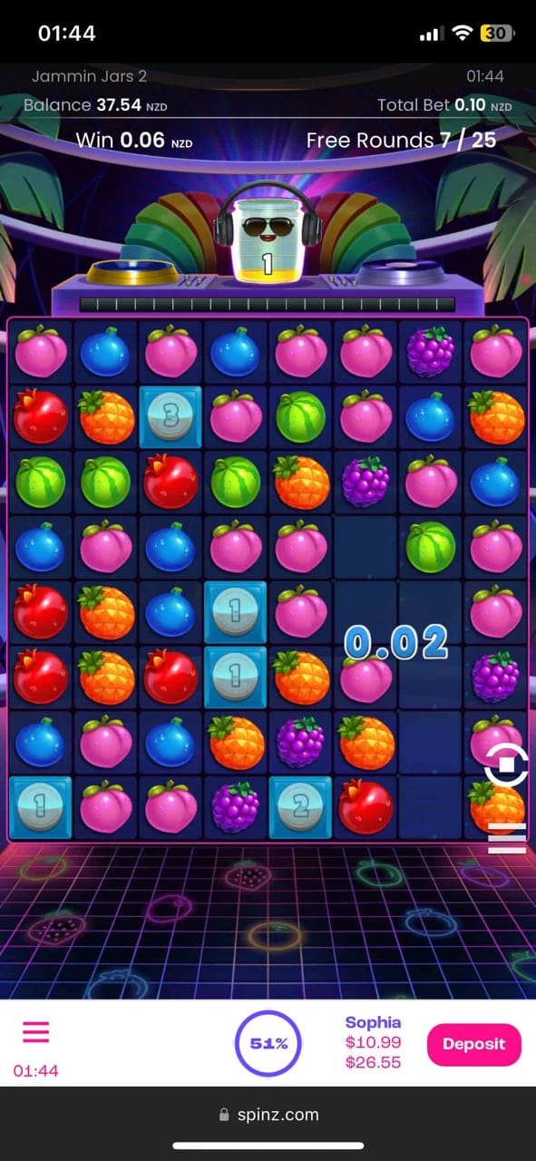 So, on top of my bonus, I got 25 free spins on the Book of the Fallen slot machine by Pragmatic Play. That’s a choice! The next day, I received 25 fs on the Jammin’ Jars 2 pokie and won 0.27 NZD. That was weird. Some of the other pokies I was offered to spend my free spins on were Book of Oz, Big Bass Splash, Big Bass Bonanza, Money Train 4, Book of Tut, and TNT Tumble.