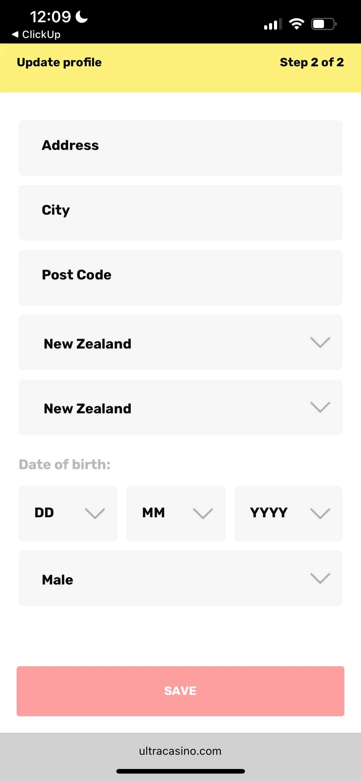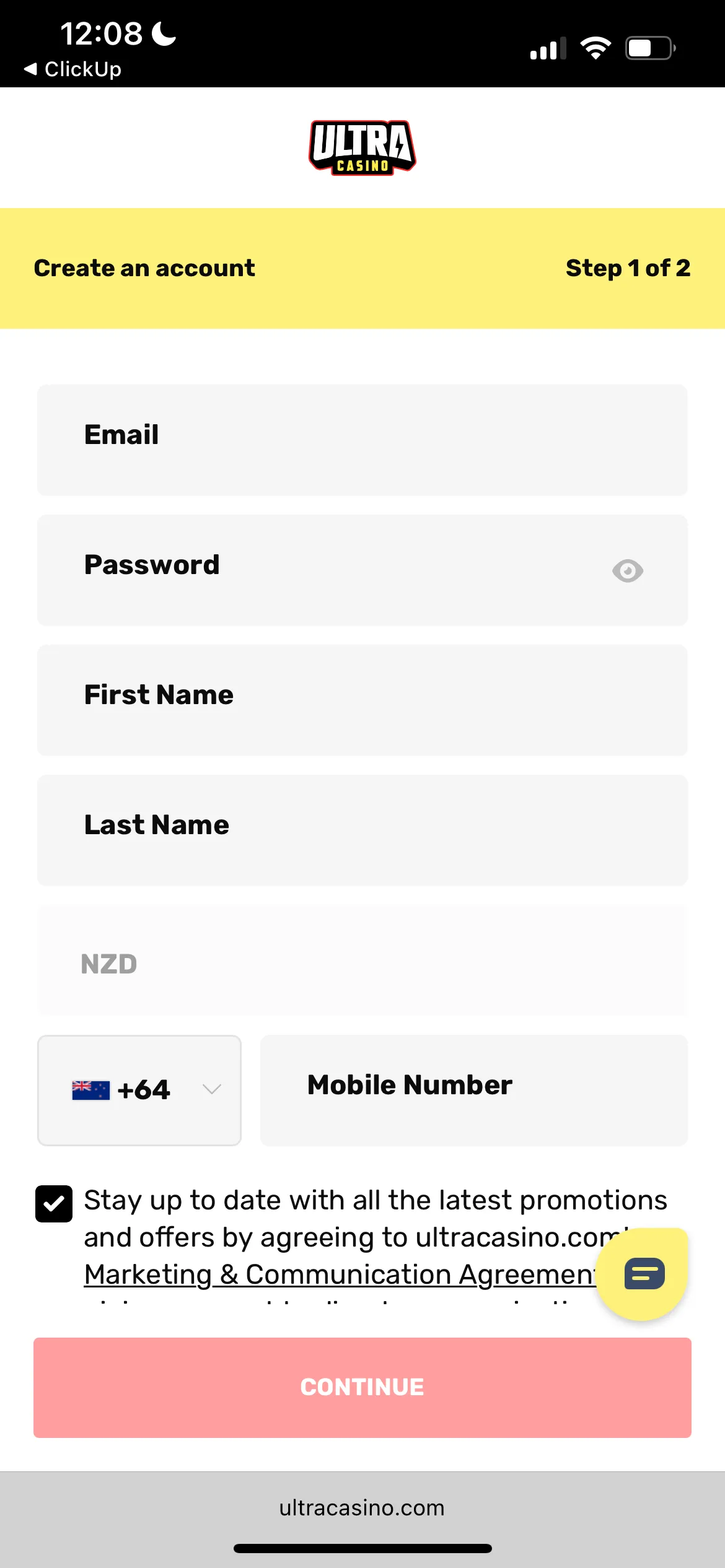 Registration at Ultra Casino in NZ