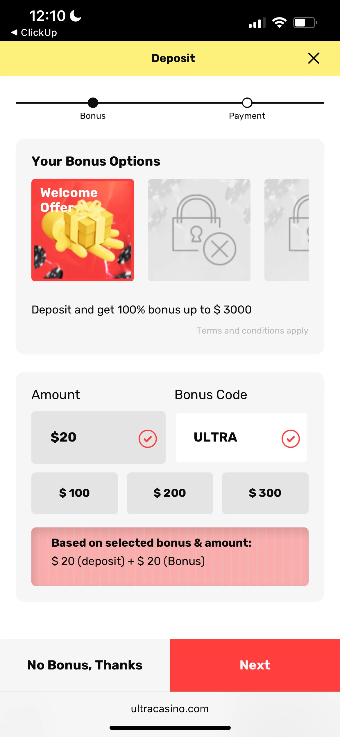 Bonuses at Ultra Casino