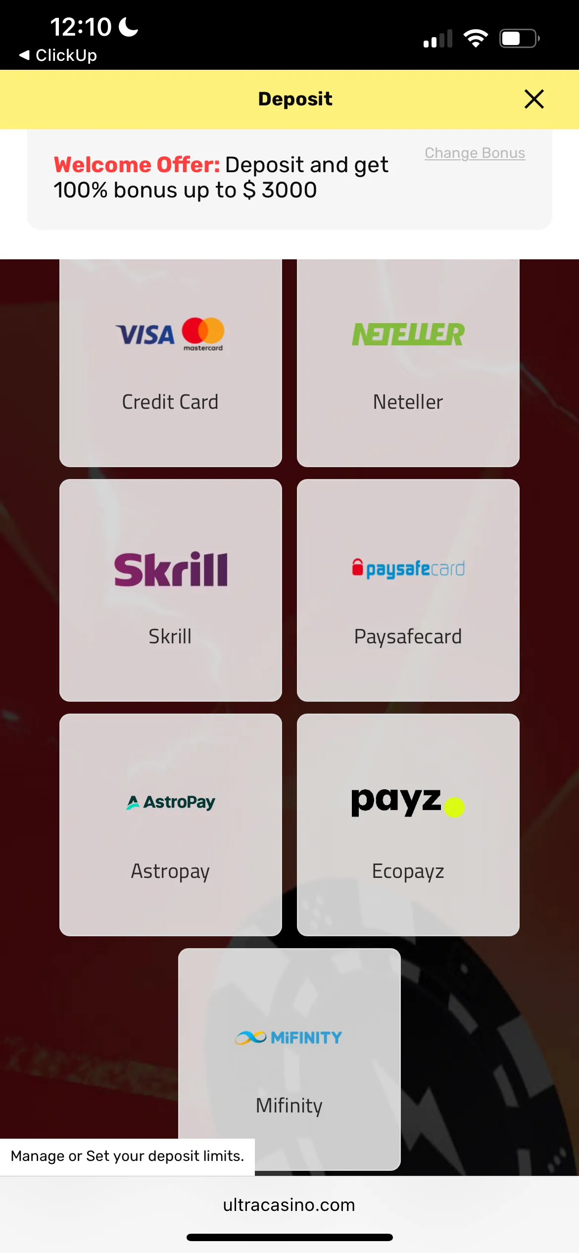 Ultra Casino provides a decent choice of banking methods, including cards and e-wallets, like: