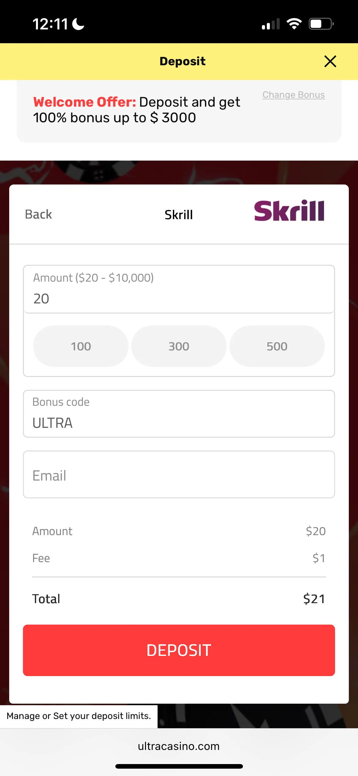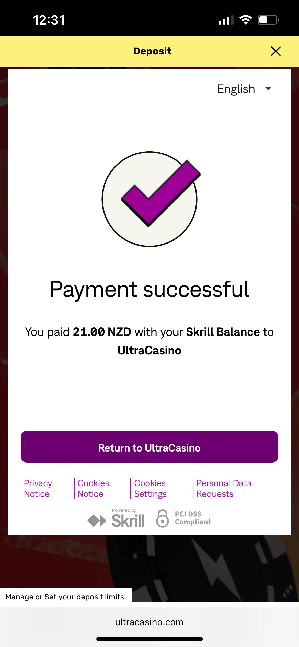 Ultra Casino in NZ has a usual registration which I will provide in steps further in this review. There was a decent number of payment methods and I chose Skrill and the first time I failed to make a deposit. I sent a text to customer support, but while chatting with the team, I reloaded the page and the deposit worked and I managed to fund my account. So, I didn’t need any assistance in the end.