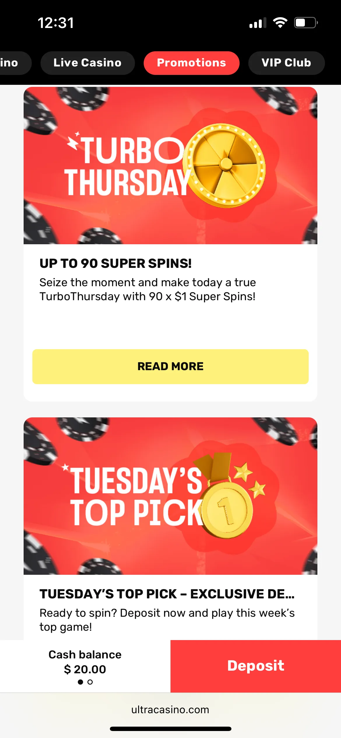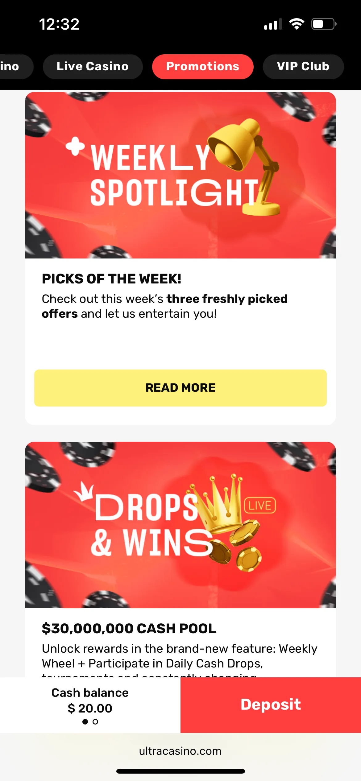 When I first visited Ultra Casino, I was drawn to its Black, red and white interface, easy navigation and big promotions. The casino site is one of the most engaging I have seen so it is a big advantage.