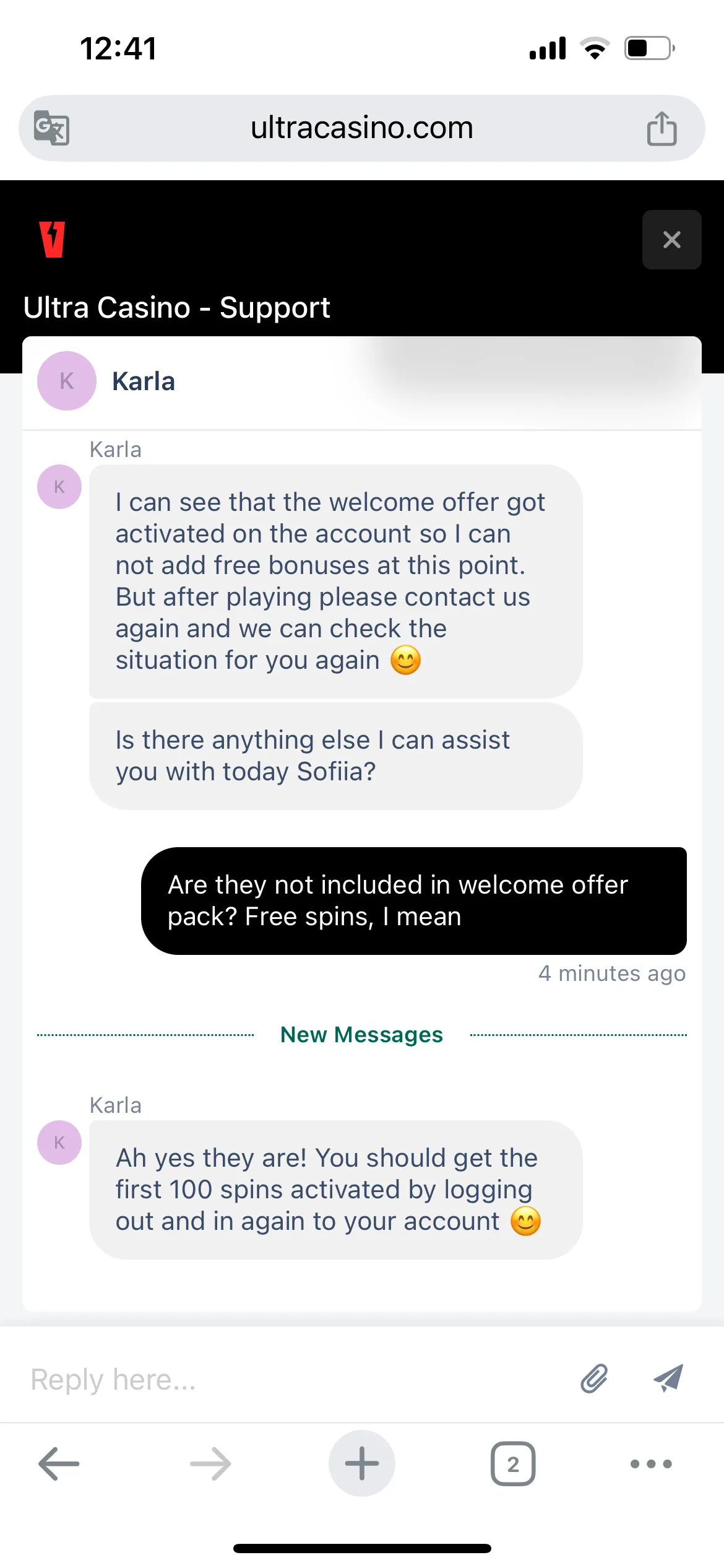 Customer Service at Ultra Casino