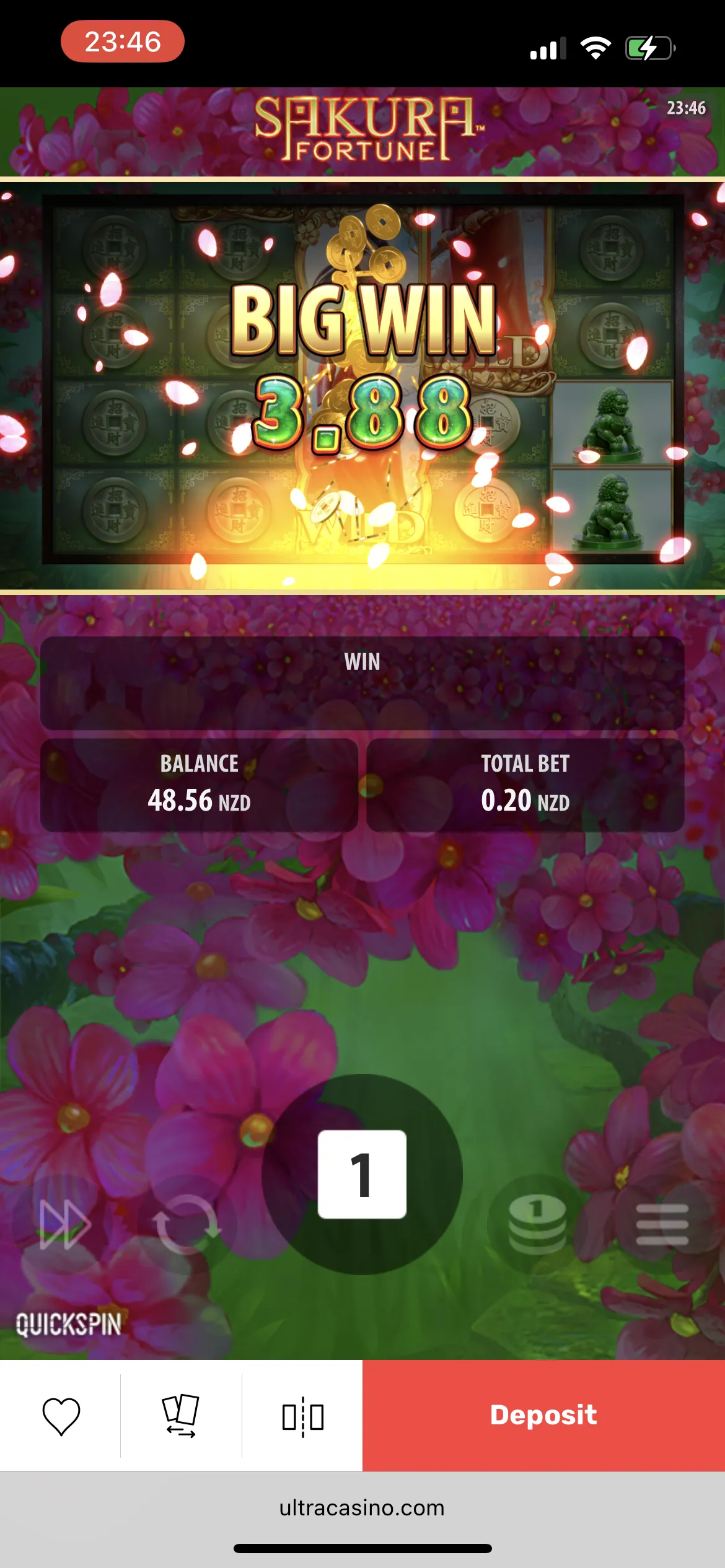 So, out of 100 FS, I got 10 FS and managed to win 15.45 NZD which was pretty impressive. I also saw an ad on the casino site about the possibility of playing two pokies on one screen simultaneously, but unfortunately, when I tried to do so via my phone, it didn’t really work since the page was constantly reloading. I tried this method on the computer and it was a bit better, yet I couldn’t really enjoy it.